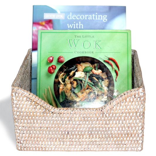 Square Storage Basket w/ Lid, Whitewash