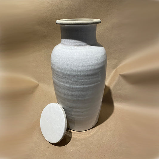 Kari Candle in White Jar w/ Black Dots - Tobacco Flower