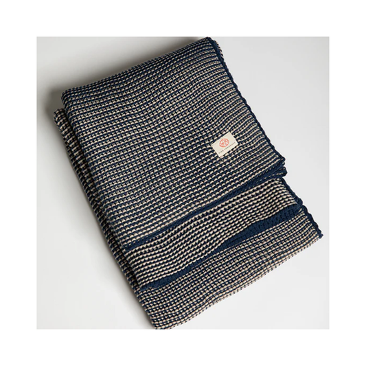 Navy Zrestha Organic Cotton Knit Throw Blanket