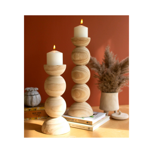 Hand-Carved Wooden Stacked Ball Candle Holder