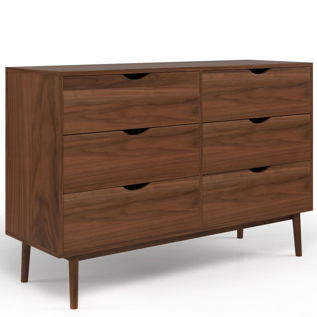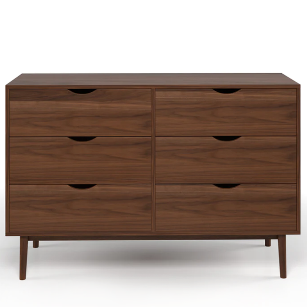 The Analise 6-Drawer Dresser features a smooth surface, solid frame and stylish cut-out handles. It has 6 spacious drawers for storing belongings and a wide top surface for displaying items. Its clean lines and sturdy 4-legged base is a classic design ideal for contemporary bedroom furniture.