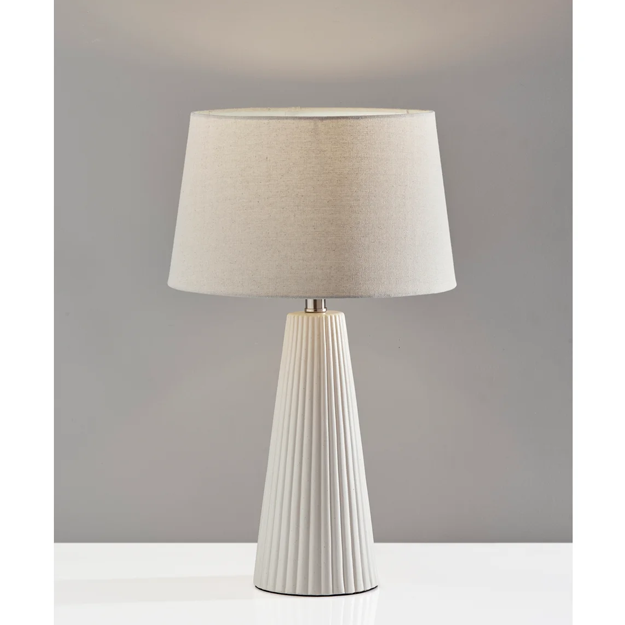 The Lana Table Lamp brings bold texture and dimension to your space with its tapered, modern ceramic base featuring long vertical ridges. The off-white transitional style table lamp is complemented by an oatmeal linen fabric drum shade. Bonus: This lamp has an alternative fitting to accommodate a washer-style lampshade.