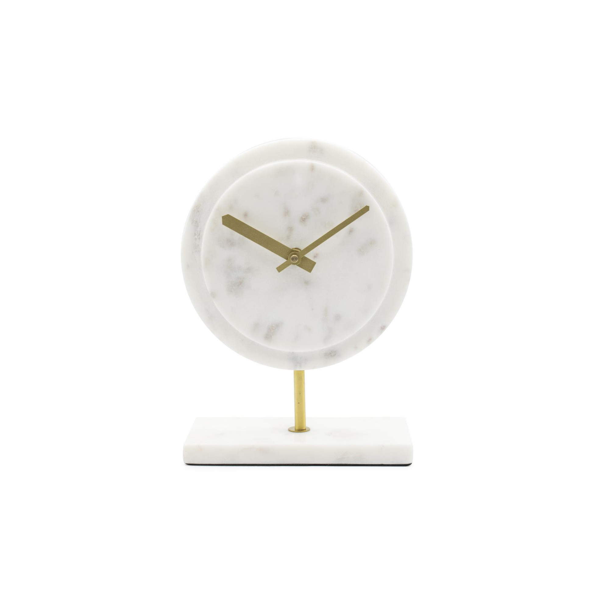 The Piero Clock was designed with the luxurious Italian post modern home decor in mind. This now classic elegant design features brushed brass time hands and display stand. The timeless white marble face and base can fit into some of today's hottest modern lifestyle trends.