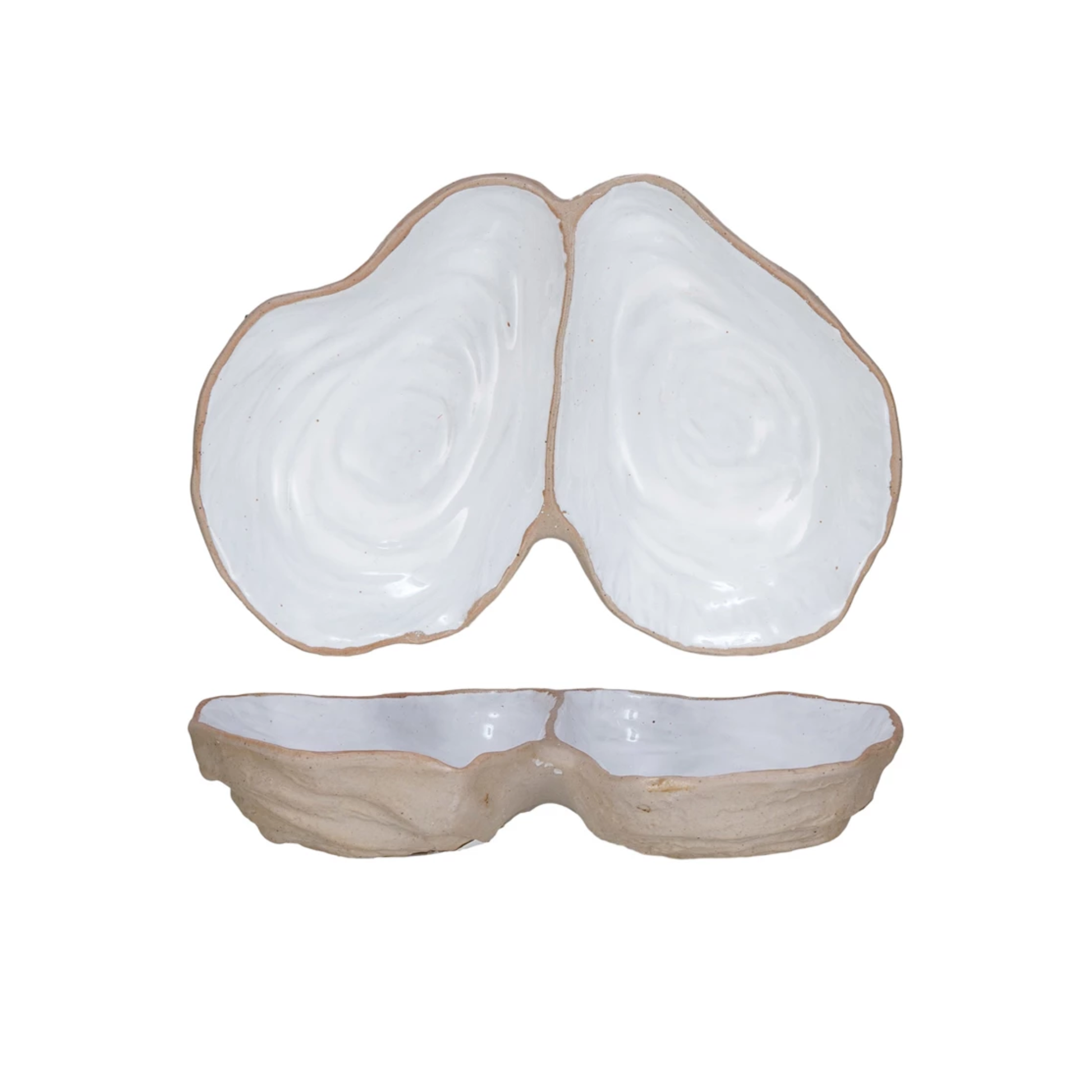 Stoneware Oyster Shell Shaped Dish w/ 2 Sections
